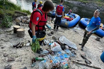 Очистка берегов - не так просто. Мусор нужно не только собрать и отсортировать, его еще нужно безопасно провести по порожистой реке к месту выгрузки.